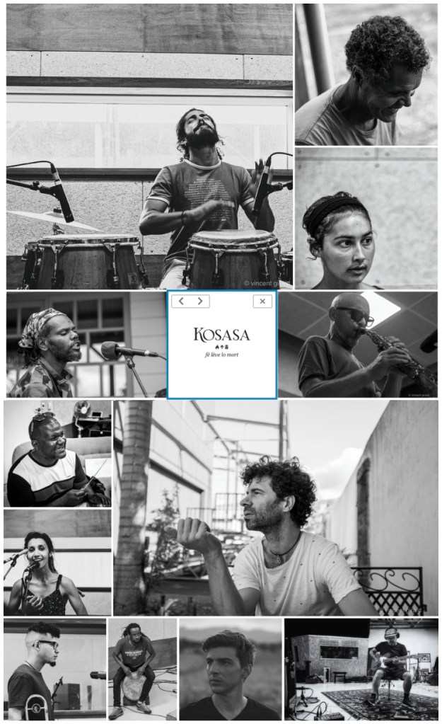 Eno Zangoun, Lélin Gado, Anne Gaelle Hoarau, Sebastien Joanniez, Luc Joly, Melanie Bourire, Teddy & David Doris, Vincent Girard, Frederic Madia « GiliK », Marcel « Willy » Phyleas et SuissA ont joué le jeu de la rencontre et du partage de leur culture, leurs grooves, leurs voix sensibles ou intenses et leur parcours durant celaboratoire et cette création éphémère.